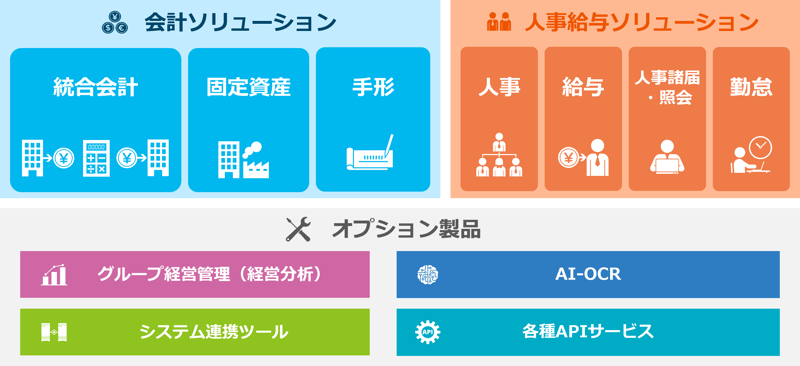 財務会計や人事給与などバックオフィス業務の負担を軽減するべく“ 経理部・人事部ファースト” な思想を取り入れており、高度なテクノロジーを実装することで圧倒的な使いやすさを実現。海外子会社も含めたグループ導入で経営情報を瞬時に可視化でき、現地の商習慣などグローバル展開に必要な機能を装備しています。