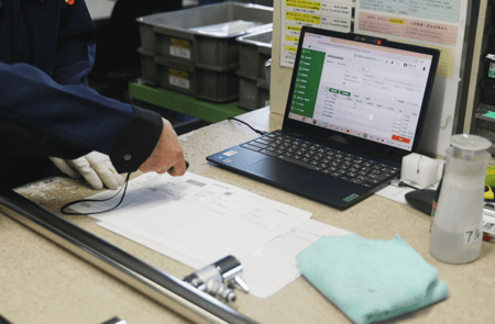 従来は紙の記録書をもとに事務所で事後入力する運用だったが、モバイル端末の導入により現場入力する方式に改めた。これにより入力負荷の軽減のほか、在庫のタイムリーな把握や着完の入力による作業時間分析の高度化、精緻な不良の把握等を可能とした。