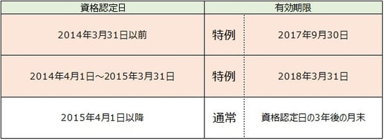2015年3月31日、及びそれ以前の資格認定者の皆様には有効期限の特例が適用されます。